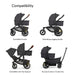 • Compatible with the Veer Switch&Roll Stroller and Switch&Jog Jogger; use with Switchback Seat, car seat or a second bassinet on the Switch&Roll with a second seat adapter, use on the Cruiser or Cruiser XL with a Switchback Seat adapter.