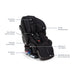 - Leg rest extends to provide up to 2” of additional legroom for forward-facing riders