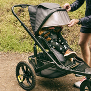 Ultra-terrain jogger rips through paths and jogging trails. Attach your infant car seat or bassinet (sold separately) to stroll with a newborn, then attach Switchback Seat to jog 6mo+.