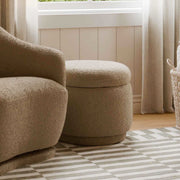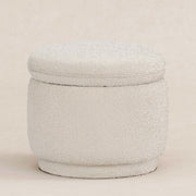 The Enoki Storage Ottoman is as functional as it is stylish, with its round, stacked look and ample storage for all of your baby's extra sheets and blankets. Upholstered by hand in our texture-rich boucle fabric, this trendy ottoman can be paired with any seating to create a statement piece in your nursery or home.