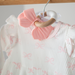 The Ruffle Bow Baby Sleeper is a charming and cozy addition to your little one's wardrobe. This white cotton rib footed sleeper is designed with ruffle shoulders and pink bows at the ankles, adding a touch of elegance to its appearance. It features built-in scratch protector hand cuffs to keep your baby safe and comfortable. The inner leg snaps make diaper changes quick and easy. This sleeper is made from a soft and breathable blend of 69% Rayon, 26% Cotton, and 5% Spandex, ensuring a gentle touch on your baby's skin while providing a snug fit.