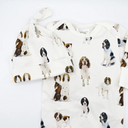 Make your newborn photos even cuter with the Springer Spaniel Newborn Gown and Hat Set! This adorable dog print baby gown with a matching hat is the perfect addition to your hospital bag.