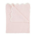 The Pink Scallop Chenille Blanket is a cozy and stylish addition to any nursery or living space. Crafted from soft, luxurious knit chenille, this blanket offers warmth and comfort, making it perfect for snuggling. The elegant contrast scallop trim adds a touch of sophistication and charm, enhancing its visual appeal. Measuring 34" x 28", it is an ideal size for cribs, strollers, or as a decorative throw. Made from 100% polyester, this blanket is durable, easy to care for, and designed to withstand everyday use while maintaining its plush texture and vibrant color.