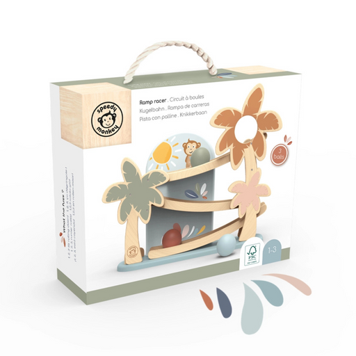 Speedy MonkeyThis is an original wooden ramp in an exotic decor that provides hours of fun!Little ones will love watching the three wooden balls roll down the r...