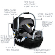 - The ReboundReduceTM stability bar on the Alpine car seat base helps minimize movement in a crash for peace of mind while you're on the move.