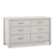 Complete your modern farmhouse nursery with the Hemsted 6-Drawer Dresser, featuring a premium texturized wood finish and elegant gold hardware that enhances the dresser's contemporary flair. Soft-closing, ball-bearing drawer glides make this dresser easy to use.