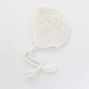 A stunning hand knit bonnet in the softest angora acrylic yarn has tassel ties. It is a great hospital hat for coming home, perfect for first portraits and makes a great baby shower or hospital gift. Sized just for newborns.
