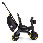 The Liki Midnight is the new way to ride in ultimate style. With a bold all black design, this edition includes elevated black faux-leather handlebars, a black anodized aluminum parent handle, and elegant faux-leather diamond-stitch backrest and seat cover.