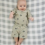 This two-piece set is for babies and toddlers to 6 years. These come with a short sleeve top + elastic shorts. They are comfy for your little one but a style to look dressed up. They are cute and functional!