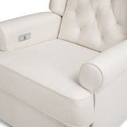 The Harbour Power Recliner has been thoughtfully designed to blend comfort, convenience and style in your nursery and home. Sink into this sizeable chair that glides, swivels, and reclines to a peaceful resting position. With its clean lines, tufted design and wingback style, Harbour can easily transition from nursery to big kid room, playroom or living room. Featuring a premium stain-resistant and moisture-repellent fabric, this durable recliner will look as good as new for years to come.