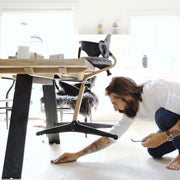 The Stokke Nomi chair & the Stokke Nomi Baby Set – they're better together! Select the Stokke Nomi chair in the color of your choice to save on the Baby Set when you buy them as bundle. This allows you to bring your baby to the family table for bonding from when your child is able to sit unaided (approx. 6 months). Much like a protective arm around your child, the Stokke Nomi Baby Set offers your baby comfort and support as they're learning to sit while still allowing them freedom of movement. Easy to attach, the Baby Set simply clicks on, first underneath the seat and then on the backrest. The rounded, organic contours create a comfortable highchair with unrestricted movement – which is excellent for toddler's development as they explore, taste and interact at the family table. When your child is ready to climb up and down from the chair without help, it is time to remove the Stokke Nomi Baby Set.