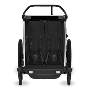 Inside the Thule Chariot Cross 2, children are greeted with plush, ergonomically designed seating for unparalleled comfort. The modular seating ability means that you can choose to have one kid sitting in the middle, or two kids on either side of the trailer. The Thule Chariot Cross 2 is committed to sustainability, utilizing materials that are not only PFAS free but resist sun damage and offer the possibility for repair or replacement, extending the lifespan of your trailer.