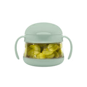 Large opening for easy snack access · Soft spill guard · Attached lid · Interactive weighted base leans and wobbles · Rubber seal to keep the contents fresh · 9oz/250ml · 12m+ months · PVC, BPA & Phthalate free · Available in twin packs · Product dimensions: 5” W x 6.5” H x 3.5” D