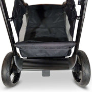 A smooth glide is of course essential for a comfortable ride, which is why we’ve outfitted our tandem stroller with solid wheels, textured handlebars and a reliable shock-absorbent framework. Made from hardened rubberized material, the wheels never deflate or succumb to rugged terrain. Measuring in at 34” x 24” x 14” when folded, the stroller stores easily under the bed, in a closet or in the trunk of your car, minivan or SUV.
